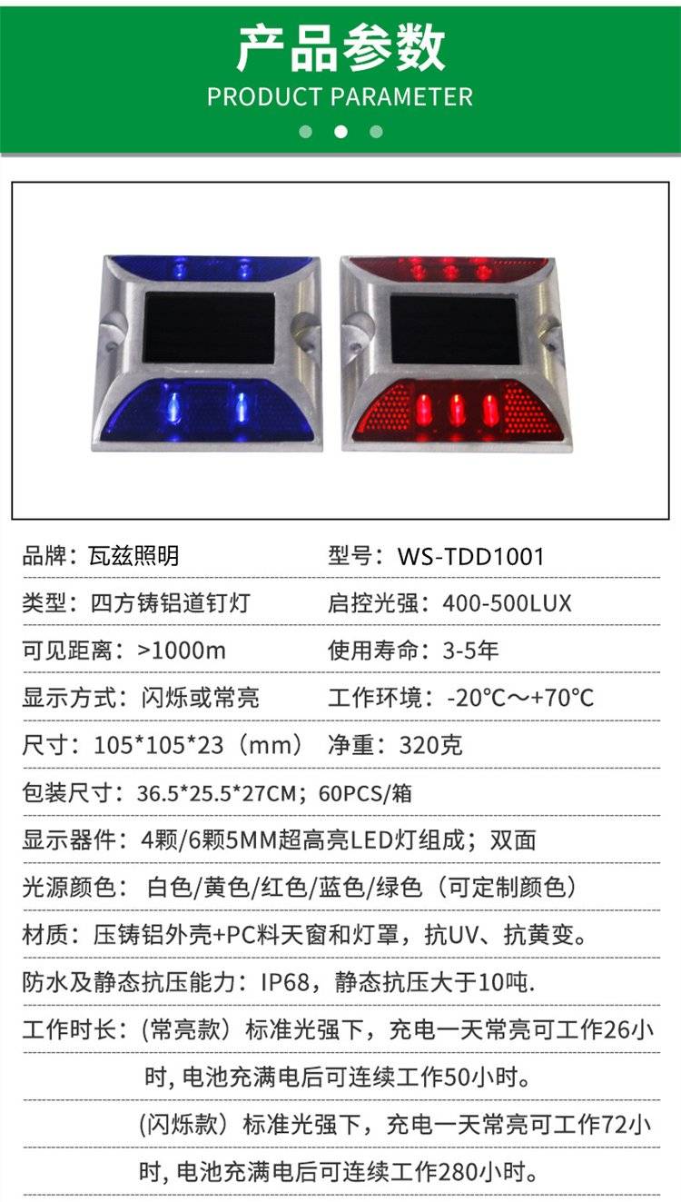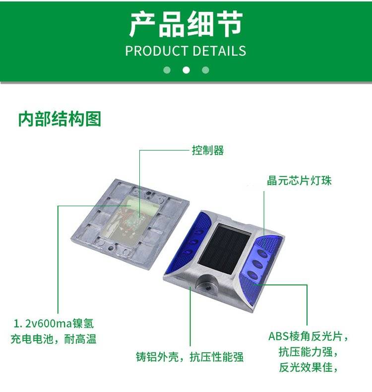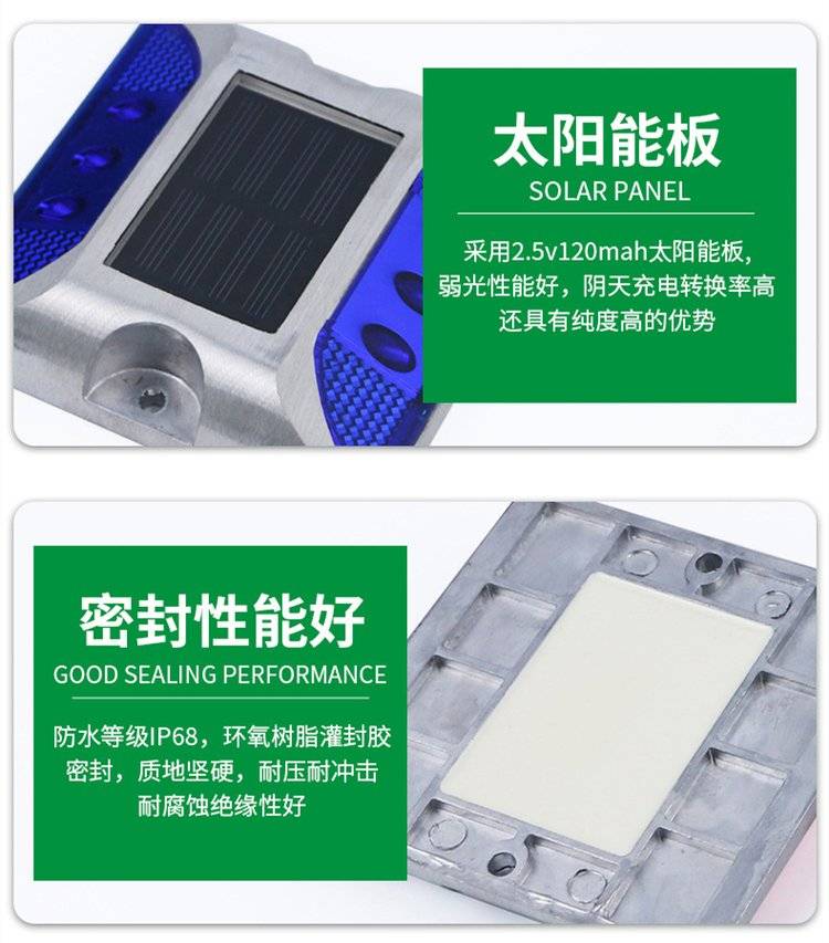 太阳能道钉灯小四方压铸铝合金高速公路双面反光道路交通警示灯